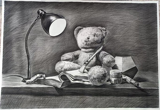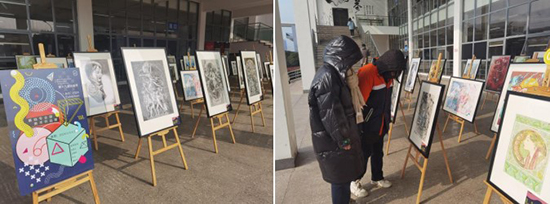 此次畫展,共展出39幅作品,作品呈現形式多元,有素描、水粉、丙烯、彩鉛、鋼筆畫等,參與班級有:2221班、2222班、2224班、2225班。愿他們敢于展示自我,發揚工匠精神,執起畫筆,筑夢繪未來?。闷G)