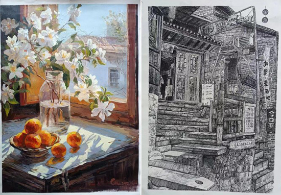 《窗前一隅》2225谷欣娣 鋼筆《小城故事》2225宋佳惠