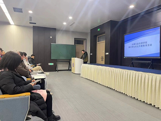 為進一步增強滇川學生的安全防范意識,提高自我保護能力,進一步打造平安校園,1月3日中午,永康五金技師學院學生處牽頭,在學院A幢一樓東報告廳開展了滇川學生安全專題教育活動。