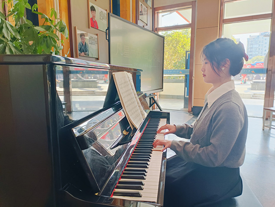 2217班陳楚浩同學(xué),臨平職高器樂社社長,鋼琴十級,曾多次參加校園舞臺和合唱團的鋼琴伴奏并獲獎,他鋼琴演奏的《輝煌的大圓舞曲》和《海闊天空》獲得全場一致好評。2320班趙思源同學(xué),鋼琴十級,曾獲2021年第五屆“央音”全國青少年藝術(shù)展演(市級)鋼琴獨奏第三名,她鋼琴演奏的《克羅地亞狂想曲》和《采茶撲蝶》也獲得全場掌聲。