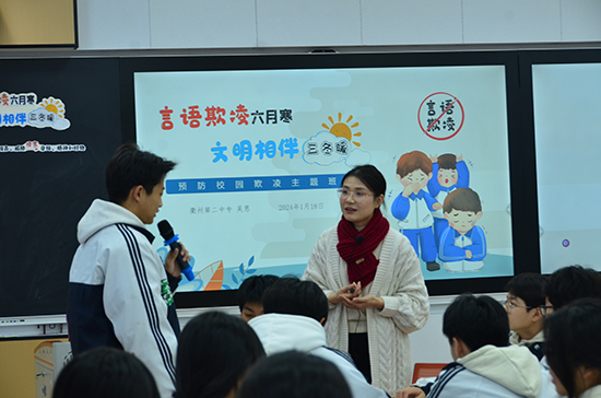在18日上午的班會課展示環節,衢州第二中專的吳思老師以“言語欺凌風寒,文明相伴三冬暖”為主題,引導學生認識到文明用語的重要性。衢州工商學校的李爾老師展示了題為“低碳生活,從一度電開始”的班會課,引導學生實踐節能減排。