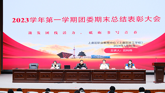 近日,紹興市上虞區職業教育中心召開2023學年第一學期團工作期末總結表彰大會,79位班級團支書、團委學生干部參加會議。