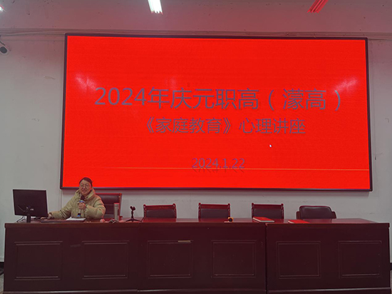 為加強教師的家庭教育理念,提升教師的家庭教育心理支持能力,1月22日,慶元縣職業高級中學開展家庭教育心理知識科普活動。此次活動以講座的形式開展,主題為《家庭教育——夫妻恩愛》,全校班主任參會。