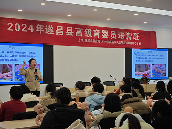 1月27日,由遂昌縣教育局主辦的高級(jí)育嬰員職業(yè)技能培訓(xùn)火熱開(kāi)班,全縣公、民辦非在編幼兒園教師、保育員85人報(bào)名參加學(xué)習(xí)。