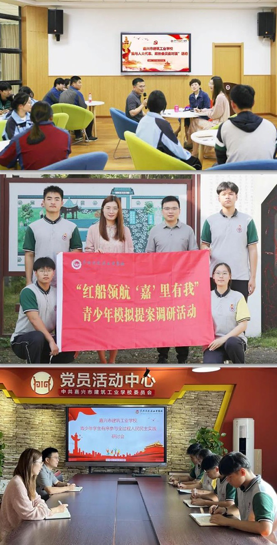 作為青少年學生有序參與全過程人民民主實踐的試點學校,嘉興建校積極探索并最終建立起了宣傳、學習、實踐“三維一體”的實施路徑,進一步引導學生樹立對我國國情、政體和重要政治制度的正確認知,努力發出青春之聲,從而形成青少年學生主動有序參與協商民主的良好氛圍。