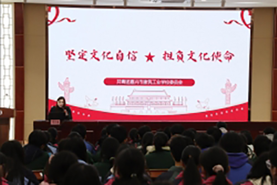 開班儀式結束后,蔣山花為學員們帶來了本期團課第一講《堅定文化自信 擔負文化使命》。蔣山花從做中華優秀傳統文化的守護者、做革命文化的傳承者、做社會主義先進文化的擎旗者三方面展開講述,用一個個榜樣人物的動人事跡及其所折射出的愛國情懷和無畏精神,向學員們展現了文化對于培根鑄魂的重要意義。蔣山花強調,當下青年學子應當高舉習近平新時代中國特色社會主義思想偉大旗幟,以習近平文化思想為引領,堅定文化自信,堅守中華文化立場,擔負文化使命,為建設文化強國凝心聚力。