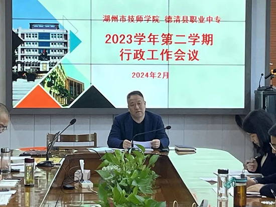 2月22日上午,湖州市技師學院、德清縣職業中專在職業中專圖書信息樓二樓會議室召開了2023學年第二學期第一次行政工作會議,對新學期開學準備工作進行研究布置。兩校中層及以上行政領導參加會議。
