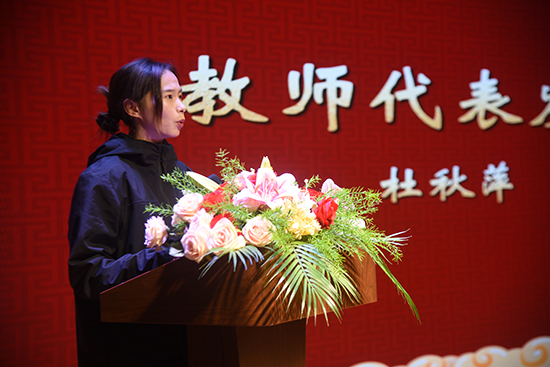 杜秋萍老師講述了自己帶領隊員們認真備賽、最終獲得出色成績的經驗,并對校領導、體育組和隊員們表達了感謝。她表示,未來將會繼續努力,與隊員們一同爭取更好的成績。