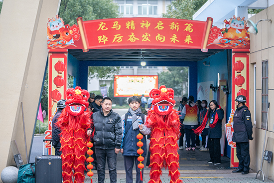 清早,春雪蹁躚賀開學(xué),校黨支部書記、校長吳曉斌與學(xué)校黨政班子成員,整裝以待,一同在校門口迎接同學(xué)們的到來。班主任老師們,精心準備,在教室等候同學(xué)們的“龍”重登場。交通引導(dǎo)組老師積極引導(dǎo)車輛,確保交通暢通無阻。學(xué)生會志愿者身著紅黃色馬甲,在校門口和寢室樓來往奔波,協(xié)助同學(xué)搬運行李,成為校園內(nèi)一道亮麗的風(fēng)景線。