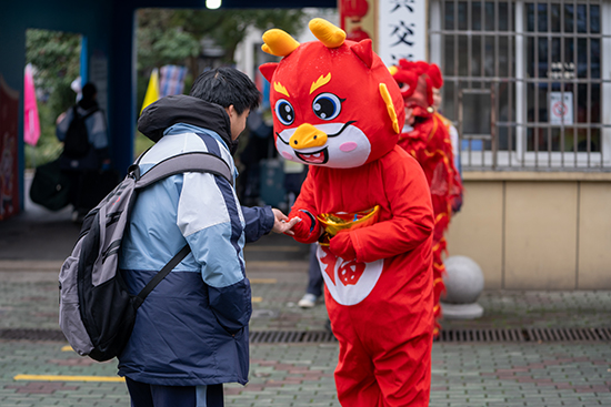 “龍人”送福、“雙龍”迎門,踏著《我們都是追夢人》的歌聲,校園內(nèi)熱鬧非凡。班級里,各班班主任將班級布置一新,創(chuàng)意滿滿。有的紅包“上墻”,里面裝的是對同學(xué)們的滿滿祝福;有的掛滿糖果,讓到校的同學(xué)嘗到第一口甜;有的放置diy可樂墻,寫滿了新學(xué)期對同學(xué)們的希冀與祝福。黑板上,一條條中國龍或威武霸氣,或可愛呆萌,將龍年的節(jié)日氛圍延續(xù)。來到教室的同學(xué)們圍坐一起,互相分享過年期間的新鮮見聞。