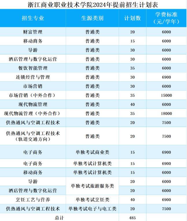 第五條2024年面向浙江省普高招生考生提前招生340名;面向單獨(dú)考試招生考生提前招生145名,共計(jì)485名。具體安排如下表: