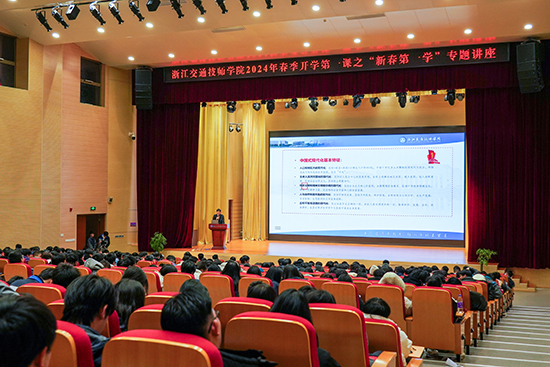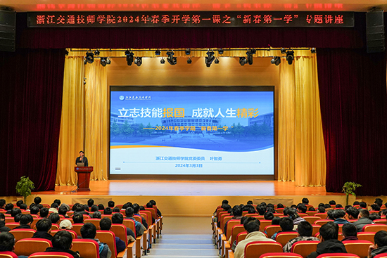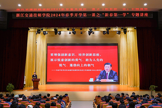 為深入學(xué)習(xí)貫徹省委“新春第一會(huì)”精神,樹(shù)牢“大人才觀”,落實(shí)“建設(shè)知識(shí)型、技能型、創(chuàng)新型勞動(dòng)者大軍”要求,3月3日晚,浙江交通技師學(xué)院黨委委員葉智勇作春季開(kāi)學(xué)第一課專(zhuān)題講座。本次講座采用線(xiàn)上線(xiàn)下相結(jié)合的方式進(jìn)行,學(xué)生代表450余人在現(xiàn)場(chǎng)聆聽(tīng)講座,各二級(jí)分院6000余名在校學(xué)生通過(guò)釘釘直播平臺(tái)觀看講座。