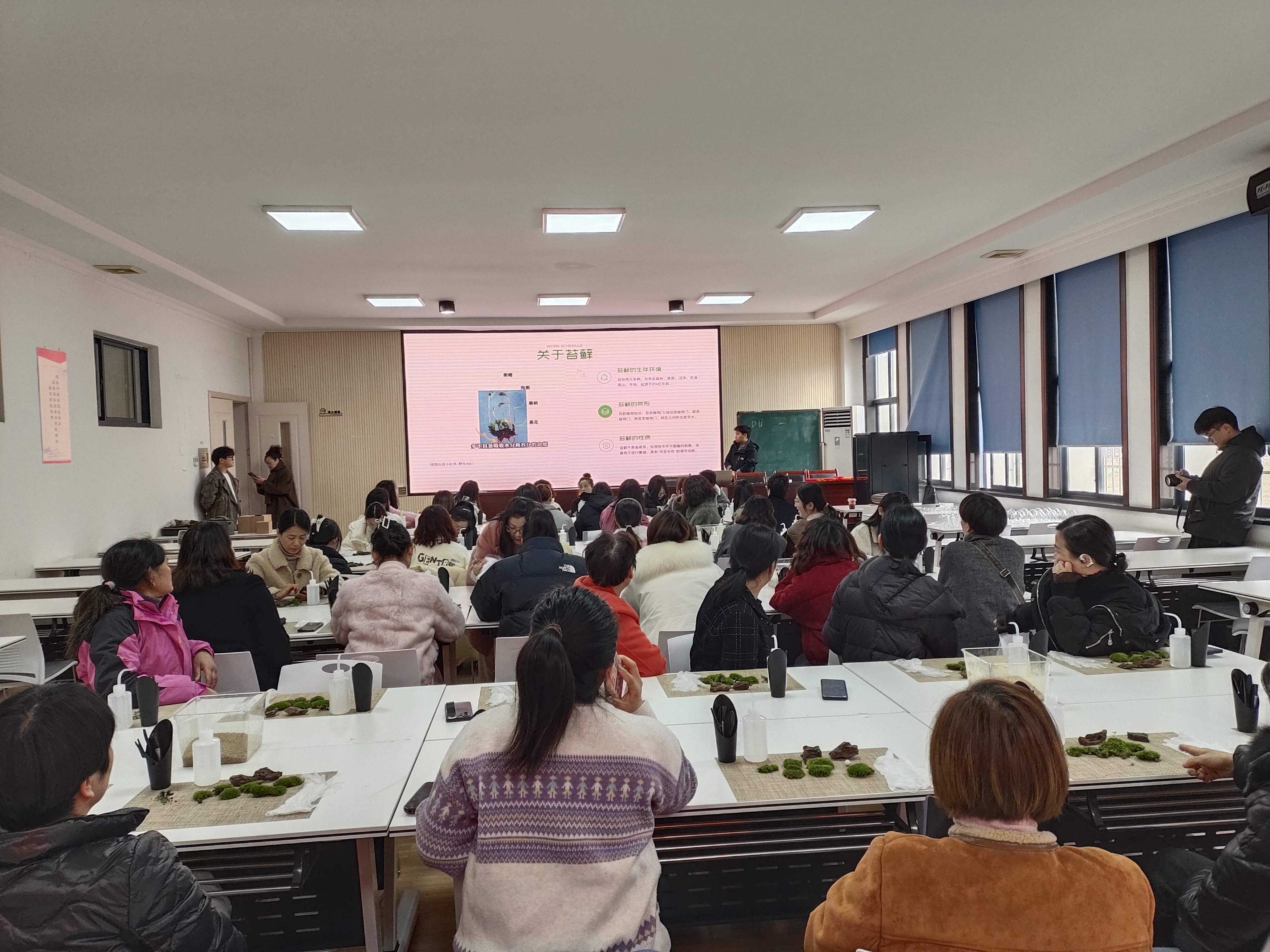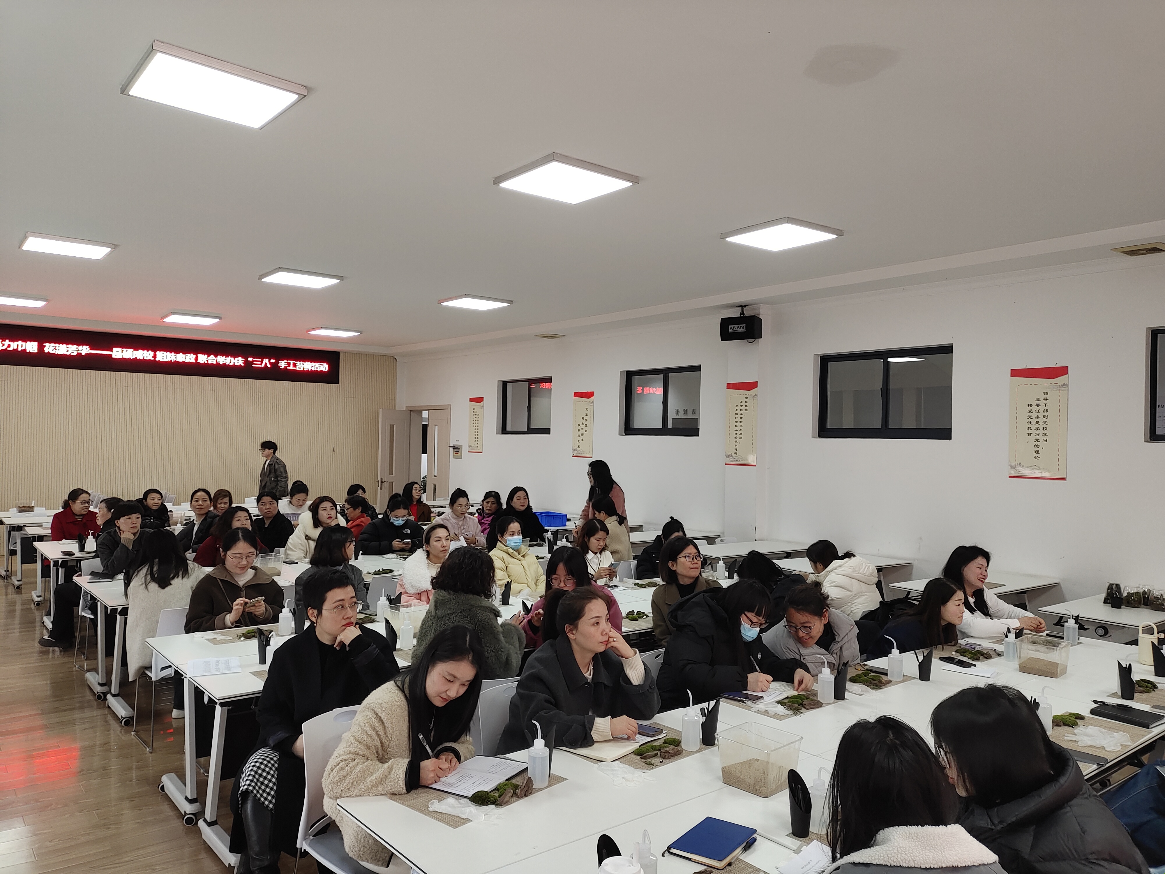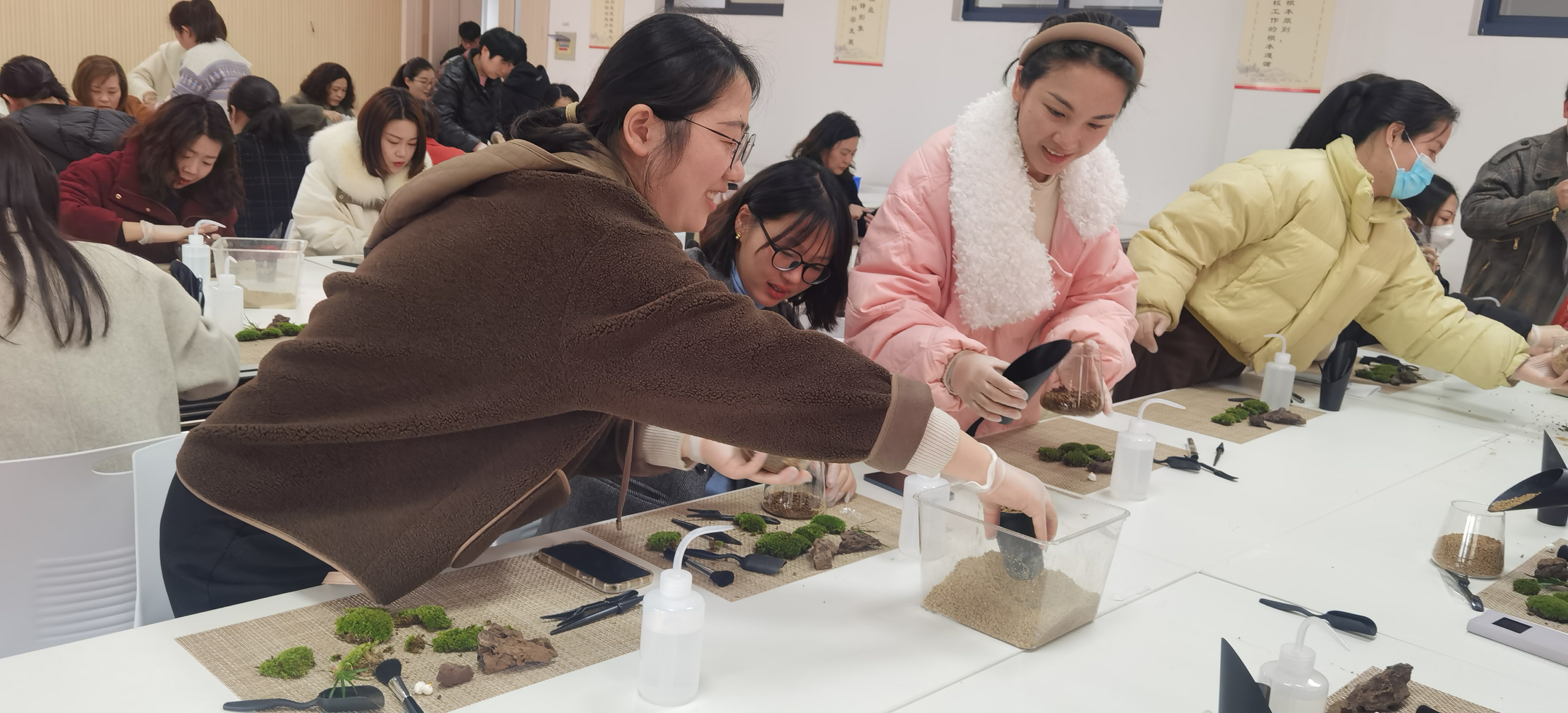 “三八”國(guó)家婦女節(jié)來(lái)臨之際,為提高轄區(qū)家政從業(yè)人員幸福指數(shù),減輕生活、工作、家庭等各方面的壓力,3月4日下午,安吉縣社區(qū)教育學(xué)院昌碩分院(簡(jiǎn)稱昌碩成校)聯(lián)合家政工會(huì)舉辦“魅力巾幗 花漾芳華”苔蘚微景觀瓶的制作活動(dòng),近60位婦女同志參加。