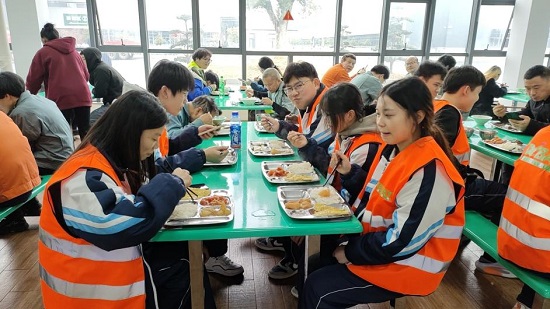 參觀結束后,師生們還來到企業食堂就餐,體驗就餐環境和就餐條件。