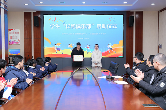 2月28日中午,上虞區職教中心舉行學生長跑俱樂部啟動儀式。學校體育分管副校長金波、團委書記呂科樺、體育部部長顧天天,長跑俱樂部教練何維志以及全體俱樂部成員參加了活動,俱樂部友情贊助方紹興市今成文化藝術品有限公司負責人阮今臣應邀出席。