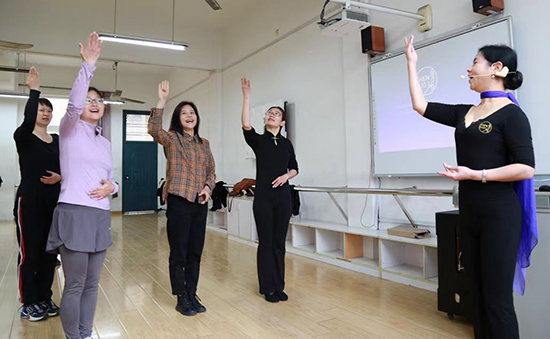 本次活動共有40余位女教師參加,在程老師的帶領(lǐng)和指導(dǎo)下,她們專心投入課程,盡情放松身心,展示出了女性溫婉、優(yōu)雅、大方的儀態(tài)儀表。