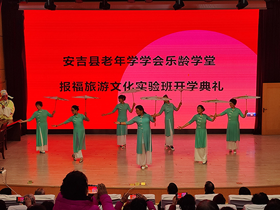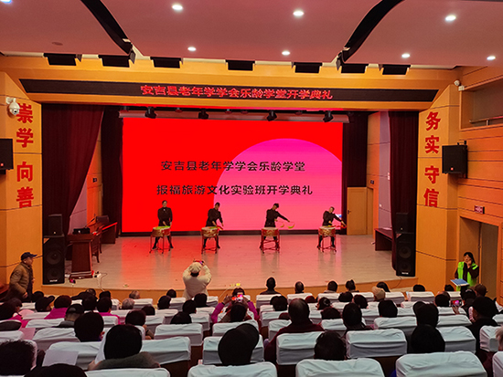 開班典禮以《愛我中華》大鼓表演開場。安吉樂齡學堂校長鐘建鳴、報福鎮人大主席王雅、縣老年學會執行會長、安吉樂齡學堂校長鐘建鳴先生分別致辭,祝愿報福旅游文化班能辦出成效。
