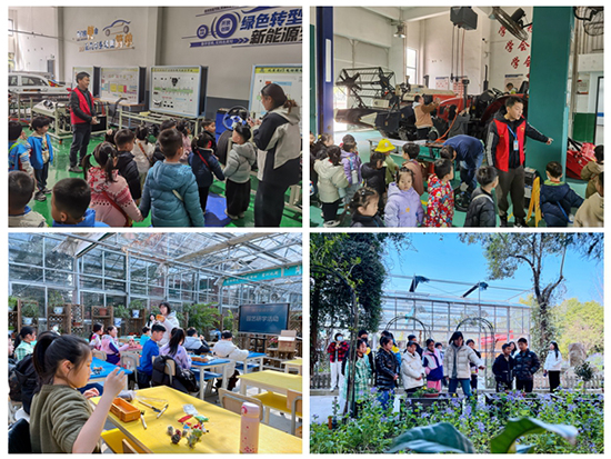 汽修支部黨員教師分兩組帶領(lǐng)幼兒園的孩子們參觀學(xué)校的汽修和園林實訓(xùn)基地,每一個場室都提前安排了專業(yè)教師引領(lǐng)講解。第一站來到汽修工廠,參觀了汽車營銷展廳、整車實訓(xùn)場地、新能源汽車實訓(xùn)室,汽修專業(yè)教師還熱情地介紹了汽車零部件、大型拖拉機、無人機等結(jié)構(gòu)功能,孩子們面對這些“龐然大物”連連驚嘆,激發(fā)起他們對汽車世界的好奇心和探索欲。第二站孩子們在黨員志愿者帶領(lǐng)下走進百花爭奇、樹木蔥郁的園林實訓(xùn)基地,感受美好春光,培養(yǎng)愛護自然、保護自然的意識,提高動手能力和勞動意識。園林專業(yè)教師生動地介紹了各類綠植花卉以及植物種植養(yǎng)護的方法,為孩子們打開了通往神奇的植物世界的大門。