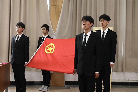 開班儀式在莊嚴的國歌聲中拉開序幕,隨后中國共產(chǎn)主義青年團團歌《光榮啊!中國共青團》在會場中奏響。