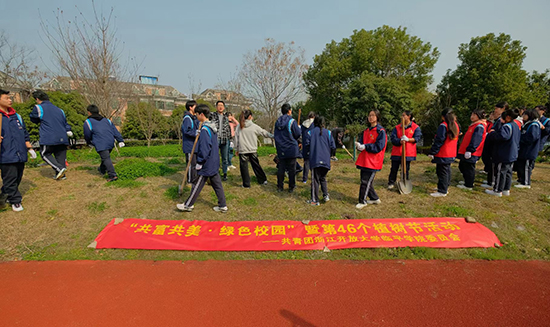植樹造林,綠化家園,是造福千秋萬代的大事。為深入貫徹黨的二十大精神,深入開展綠化行動(dòng),踐行“綠水青山就是金山銀山”理念,不斷加強(qiáng)學(xué)生勞動(dòng)教育。在第46個(gè)植樹節(jié)到來之際,浙江開放大學(xué)臨平學(xué)院團(tuán)委聯(lián)合高一、高二年級組和大專年級,以植樹節(jié)為契機(jī),開展“共富共美·綠色校園”植樹節(jié)主題教育活動(dòng)。