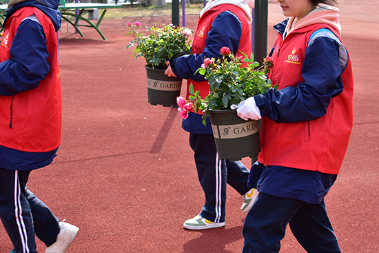 十年樹木,百年樹人。一棵樹苗經(jīng)過扶苗、培土、圍堰、澆水,吸取大自然的養(yǎng)分成長,各班學(xué)生種植完成后紛紛掛上自己班的班牌,在春風(fēng)中植下滿園花草香。