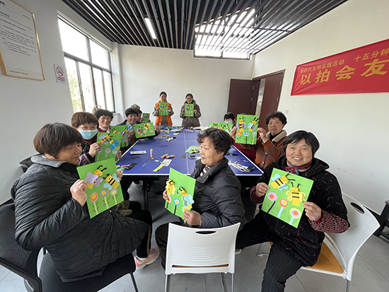 在鐘管村老年學(xué)堂、南湖社區(qū)老年學(xué)堂,一個(gè)個(gè)老年人一手拿著剪刀,一手拿著彩紙,她們用自己靈巧的雙手,剪出了美好新生活;