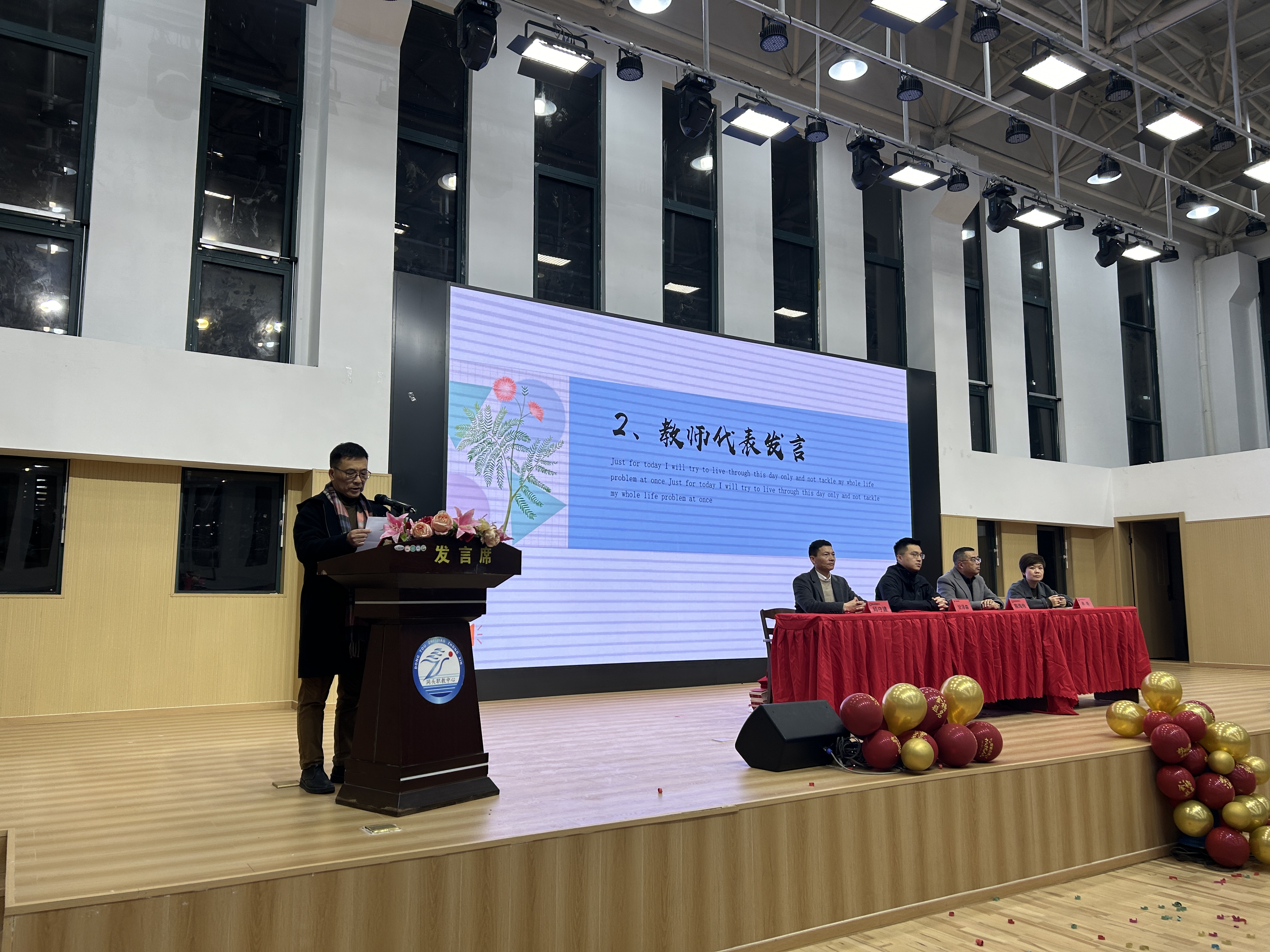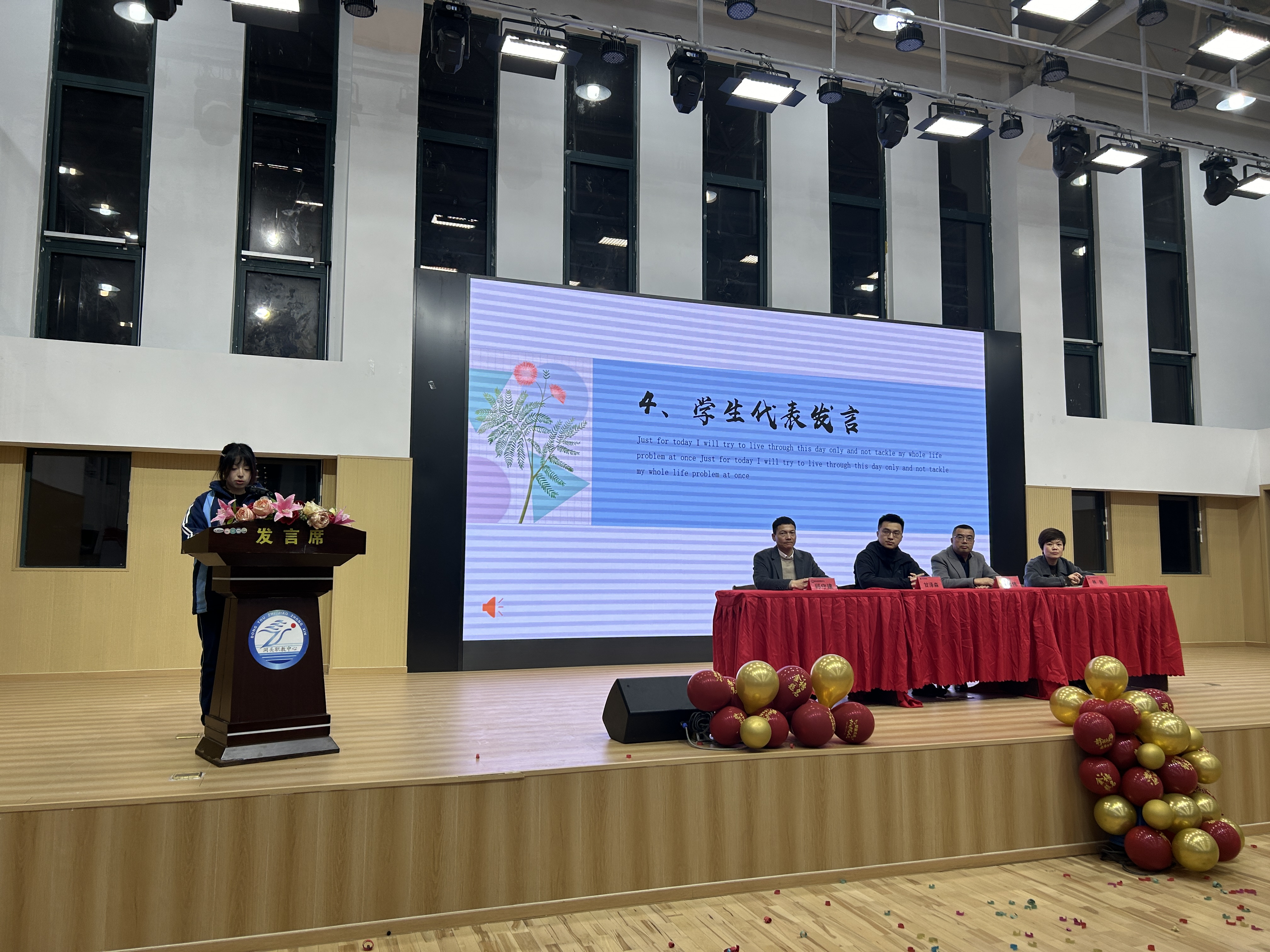 學(xué)生代表邵詩(shī)婷同學(xué)表達(dá)了對(duì)全體父母和老師的深深感謝,并向大家承諾會(huì)承擔(dān)起責(zé)任,以飽滿的熱情迎接挑戰(zhàn),展現(xiàn)出當(dāng)代學(xué)子的青春風(fēng)采。