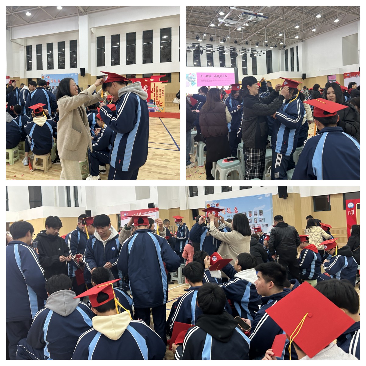 “知禮儀,懂感恩,將立于世,將載于人。”“冠笈之禮”儀式開始,嘉賓、師長(zhǎng)和家長(zhǎng)代表們?yōu)槿w學(xué)生代表佩戴成人帽、成年章,頒發(fā)《中華人民共和國(guó)憲法》;學(xué)生們行感恩禮,感謝老師和家長(zhǎng)多年來(lái)無(wú)微不至的關(guān)心與照顧。