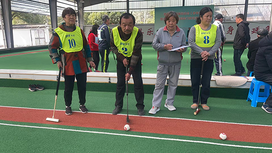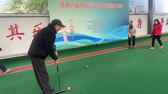 比賽期間,鐘管門球場熱鬧非凡,綠草坪中,參加比賽的老年人個個精神煥發,手握棒槌,沉著冷靜,擊球力度和角度都控制得非常精準,毫不遜色于年輕人,充分展現了老年人“夕陽紅”的活力。