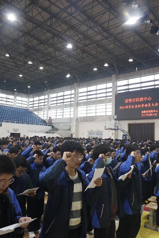 隨后,由21幼師班樓舒涵同學(xué)領(lǐng)誓,全體考生起立,右手握拳,以青春的名義,莊嚴(yán)宣誓。激情的誓言回蕩在每一個(gè)學(xué)生的耳畔,激發(fā)著他們對(duì)高職考的那份執(zhí)著的態(tài)度。