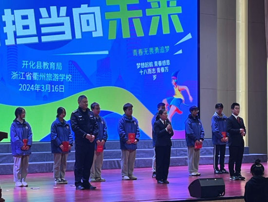 3月16日,浙江省衢州旅游學(xué)校“十八而志夢啟航 挺膺擔(dān)當(dāng)向未來”2024屆高三成人禮活動(dòng)在校千人報(bào)告廳拉開序幕。學(xué)校黨支部書記、校長曾福田,副書記、副校長徐善群等校級領(lǐng)導(dǎo)參加儀式。活動(dòng)特邀開化縣人民檢察院黨組成員、檢委會(huì)專職委員羅菲,開化華埠派出所副所長溫泉,開化縣人民法院刑事審判庭法官助理汪燁輝參與并見證儀式。