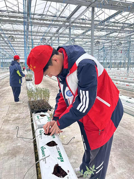 植一抹青綠,不負一絲春光。柯職團員們一行來到位于安昌街道安華村的果蔬共富工坊,將用玻璃溫室無土栽培技術(shù)種植小番茄。首先,團員青年們聽從基地工作人員對種植小番茄的溫度要求、土壤要求、種植步驟和管理技術(shù);隨后,他們?nèi)宄扇海诙?、松土、放苗、澆灌、養(yǎng)護。親手種下一株株屬于自己的“小番茄苗”,滿懷美好和期許,靜待開花結(jié)果,向陽而生。