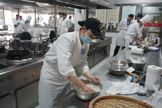 在基本功展示環(huán)節(jié),選手們需要在20分鐘內(nèi)完成8個(gè)“知了餃”生坯作品操作。選手們手法熟練,動(dòng)作迅速,不一會(huì)兒,一個(gè)個(gè)精致的面點(diǎn)便呈現(xiàn)在大家面前。評(píng)委們根據(jù)面點(diǎn)的形狀、色澤、大小等方面進(jìn)行綜合評(píng)分,為選手們的技藝水平打出公正的分?jǐn)?shù)。