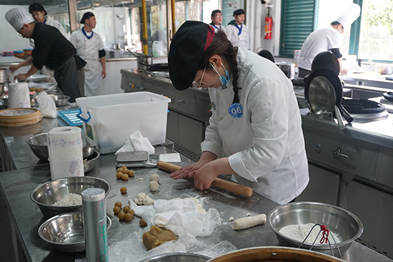 來自各學(xué)校的參賽教師與學(xué)生早早地便齊聚一堂,他們身著整潔的廚師服,臉上洋溢著自信的微笑。比賽現(xiàn)場(chǎng)熱鬧非凡,同學(xué)們紛紛駐足觀賞這場(chǎng)視覺與味覺的盛宴。比賽分為初賽和復(fù)賽,參賽選手需在規(guī)定時(shí)間內(nèi)完成指定菜品的制作,并接受評(píng)委和觀眾的品鑒。比賽現(xiàn)場(chǎng),選手們他們面前擺放著各式各樣的面點(diǎn)材料,等待著他們用靈巧的雙手創(chuàng)造出美味的作品。比賽分為三個(gè)環(huán)節(jié):水面基本功、發(fā)酵面作品、油酥作品創(chuàng)作。
