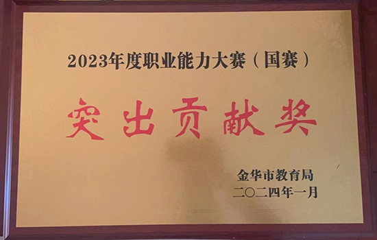 繼?2023年金華市職業教育發展考核學校獲評“優秀單位”后,學校又喜獲2023年度職業能力大賽(國賽)突出貢獻獎!