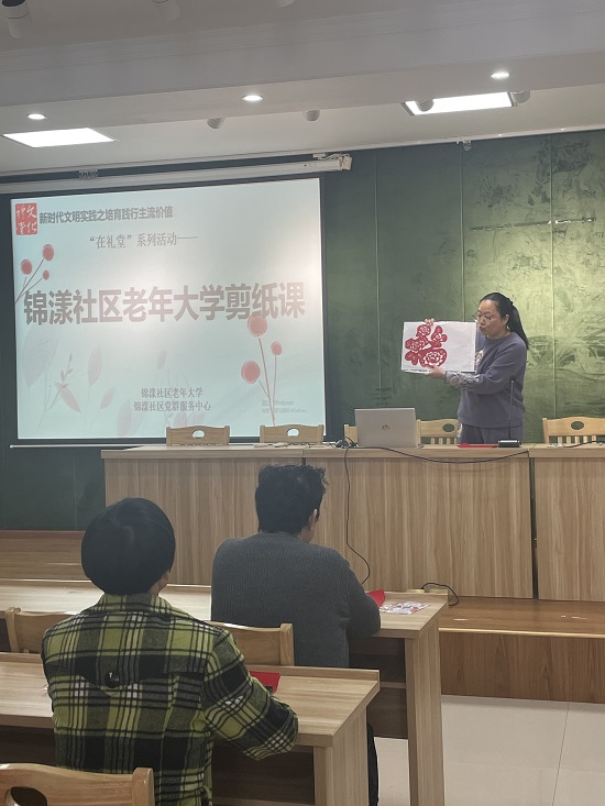 剪紙,作為中國傳統的民俗藝術,深受國人喜愛。這最早可以追溯到先唐的小小圖騰,千百年來,寄托著人們對于美好生活的希冀和向往。3月22日,為進一步傳承傳統文化,豐富居民的業余生活,宗漢社區教育中心邀請江東村剪紙達人馬益女來到錦漾社區為老年大學居民帶來一堂剪紙藝術課。