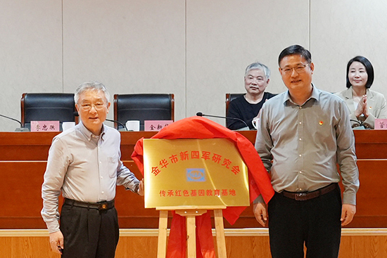 浙江交通技師學(xué)院黨委書記、校長李忠躍和金華市新四軍研究會(huì)副會(huì)長金新華共同為紅色教育基地揭牌。