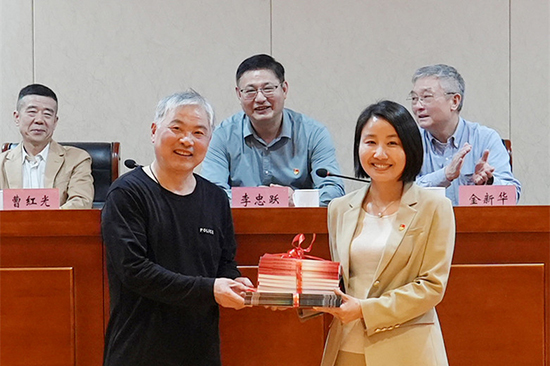 儀式上,金華市新四軍研究會(huì)副會(huì)長胡建松代表新四軍研究會(huì)向?qū)W校捐贈(zèng)書籍《金華抗日勁旅第十八大隊(duì)》《婺州風(fēng)云》。