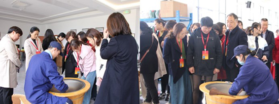 在校茶旅工的制茶實訓室內(nèi),大師工作室的成員們正忙著炒制新采摘來的鮮葉,活動現(xiàn)場,茶香四溢,沁人心脾。代表們紛紛駐足圍觀,好奇詢問,并嘗試著動手實踐。“原來鍋的溫度這么高,太不容易了。”實踐才知手工炒茶的不易。