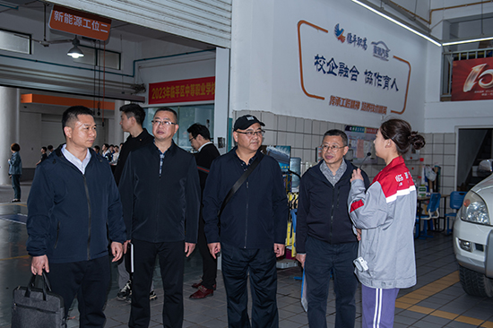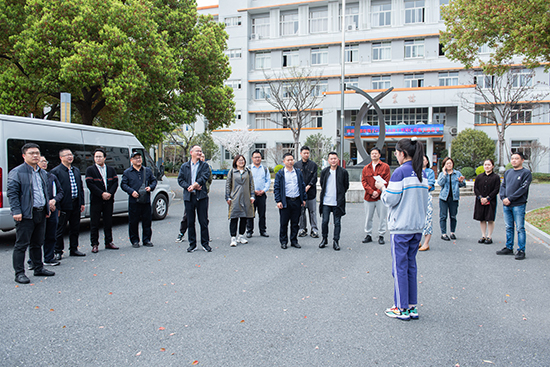 在校領導的陪同下,考察組一行實地走訪了校園,由學生組成的校園解說員小隊向考察組講解學校的校園文化、專業特色及辦學亮點。