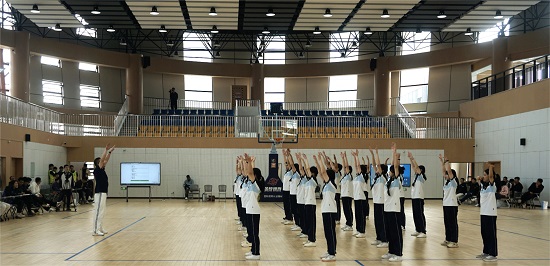 在大課間活動中,同學們熱情洋溢,奔向操場,為大家展示海寧技師學院特色五環“快樂島”跑操、韻律操活動。伴隨著動感的音樂,同學們舞動身姿、口號響亮,動作到位,整齊劃一,贏得了觀摩領導和老師們的高度肯定,充分展現了海技學子奮發向上的精神面貌和陽光自信的青春風采。