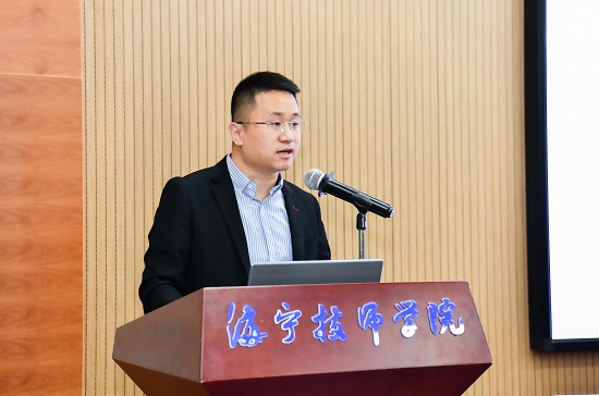 海寧技師學院黨委書記、院長陳海鋒介紹了學校辦學理念及學校體育工作。陳院長表示,此次活動是對學院體育工作的肯定和鼓勵,也是對今后工作的鞭策。學院將以承辦本次活動為契機,虛心接受各位專家和同仁的寶貴建議,進一步加強學校體育工作,厚植高技能人才成長沃土,為人才隊伍建設貢獻海技力量。