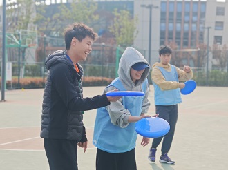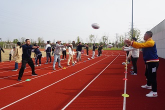 在午后互動環節中,老師們分成三組互相學習,分別體驗了英式橄欖球、飛盤和地擲球運動,感受了新興體育運動項目的魅力。