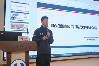杭州市建設職業學校於一副校長進行了題為《小圓球擲出“大”精彩——地拋球運動項目進校園的實踐》的主題研討。通過地拋球運動項目,豐富體育課形式,讓體育活動不受體育場地的限制。