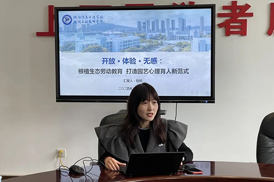 在2號會議室,陸婷為來賓們作了一場題為“根植生態(tài)勞動教育打造園藝心理育人新范式”的專題匯報。她詳細介紹了學校如何通過生態(tài)勞動教育與園藝心理育人相結(jié)合的方式,為學生提供一個更加健康、和諧的學習環(huán)境。