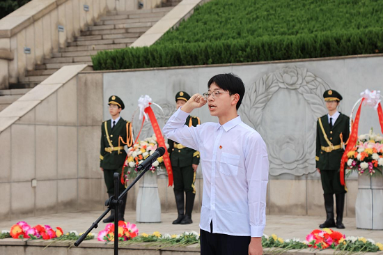 團委書記王津勉勵青年學生銘記革命歷史、崇尚革命英雄、繼承革命遺志。
