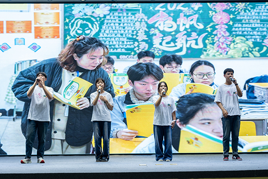 開幕式期間,大屏幕播放的學生祝福視頻以及學生代表為班主任獻花的環節,讓班主任們笑中帶淚,充滿感動。學生們帶來的改編歌曲《世界這么大還是遇見你》、舞蹈《最美的季節》和教師的詩朗誦《我愛你 就像你愛我一樣》穿插其中,使整個開幕式充滿了溫馨的師生情誼。