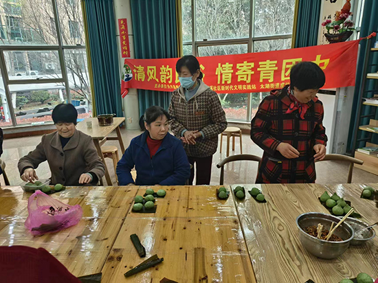 雖然很多人都是第一次制作青團,動作不太嫻熟,但大家都很享受制作過程,動手體驗了一把手工青團。社區老年人朱阿姨表示,以往家里吃的青團都是從外面購買的,自己沒有制作過這類食品,通過此次活動,不僅學會了自己做青團,還用實際行動傳承著中華民族傳統文化,以后可以根據家人的口味包上不同的餡料,太有意思了。