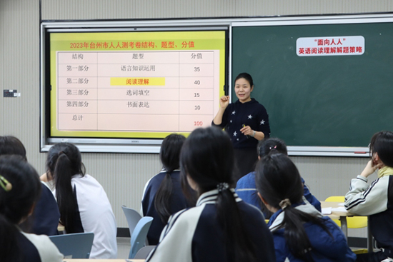 英語研討活動中,張真萍老師緊扣人人賽考綱要求,以英語實(shí)用寫作真題為例,詳細(xì)解析了通知寫作的關(guān)鍵要素,幫助學(xué)生快速掌握寫作要領(lǐng),為學(xué)生們展示了如何高效進(jìn)行通知寫作的備考。梁立老師針對閱讀理解解題策略進(jìn)行了深入探討,通過系統(tǒng)的教學(xué)環(huán)節(jié)設(shè)計(jì),幫助學(xué)生熟悉并掌握各類閱讀題型的解題技巧,提高解題速度和準(zhǔn)確率。