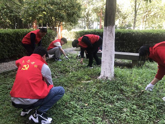 垃圾分類,應從身邊點滴做起。活動中,志愿者們身穿紅色馬甲,拿著垃圾鉗、推著垃圾桶,充分發揮發揚不怕苦、不怕累,不怕臟的精神,積極認真地投入清理工作中。他們一邊用垃圾鉗和雙手將衛生死角中的塑料瓶蓋、食品包裝、枯枝落葉等撿拾起來,分類扔進相應的垃圾桶內,一邊順手將草坪中的雜草清理干凈,用實際行動宣傳垃圾分類理念。
